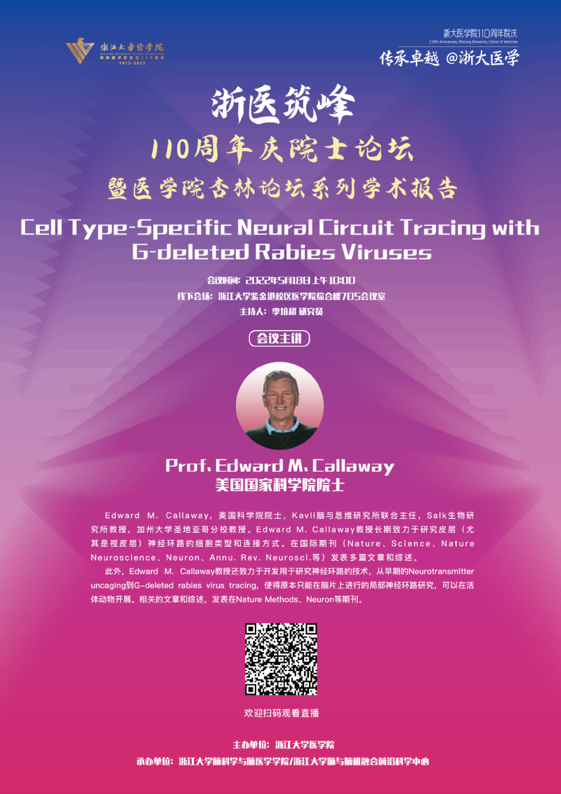 “浙医筑峰—110周年院士论坛”——Professor Edward M. Callaway