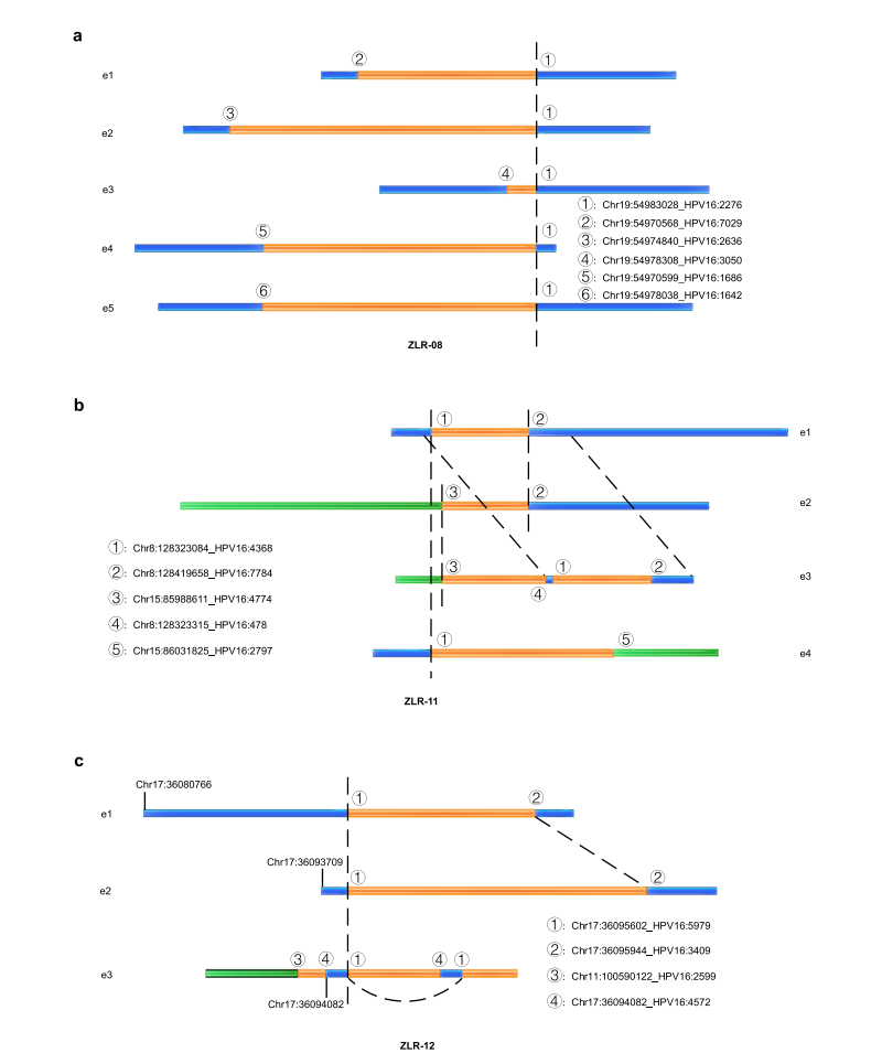 含有通常HPV致癌基因E6/E7的Type B从未被先前研究报道,但该整合类型在宫颈癌中并不罕见。我们亦发现了该整合类型和人类基因组上已知的致癌基因共同作用的证据,表明其仍有成为宫颈癌“driver”事件的潜力。